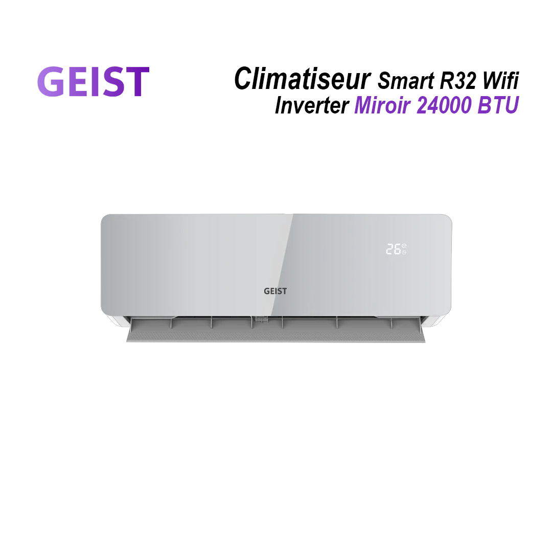 Offrez à votre maison une fraîcheur immédiate et un chauffage efficace grâce au Climatiseur Smart 24K BTU R32 Wifi Inverter Miroir Silver. Sa technologie Inverter ajuste intelligemment la puissance pour réduire la consommation d’énergie tout en assurant une température stable. De plus, son gaz écologique R32 garantit un respect de l’environnement et une performance durable.