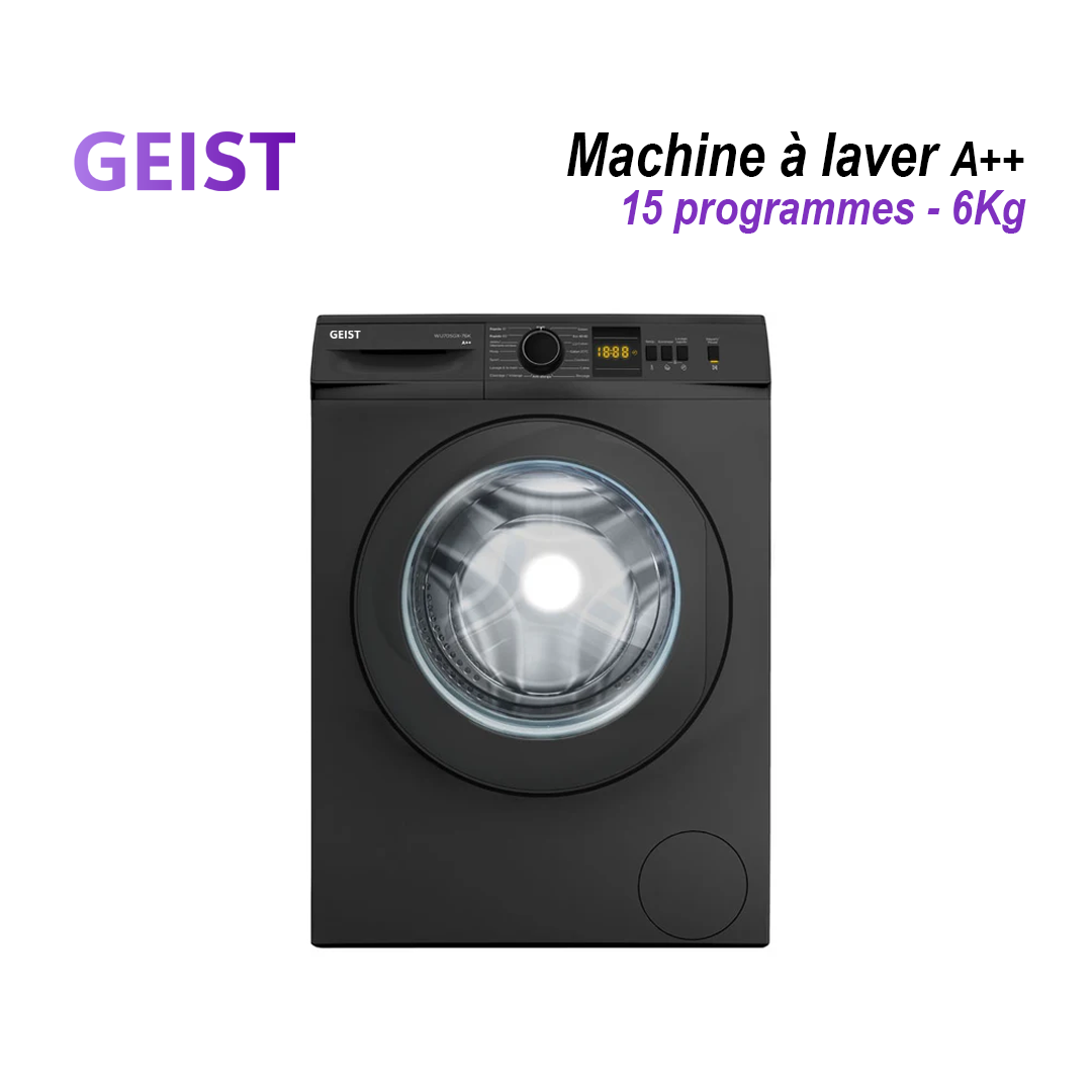 Découvrez la machine à laver A++ 6 Kg, conçue pour offrir un lavage performant tout en réduisant votre consommation d’énergie. Grâce à sa classe énergétique A++, elle garantit une économie d’électricité sans compromettre la propreté de vos vêtements.