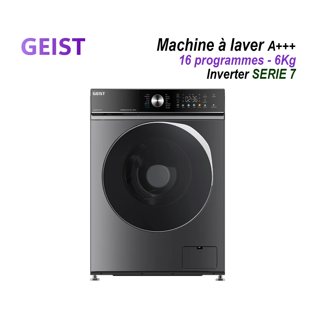 La Machine à laver SERIE 7 Glass Dark Silver allie design moderne et efficacité. Grâce à son moteur Inverter puissant, profitez d’un lavage silencieux et économique. Son écran LED intuitif simplifie l’utilisation et permet de programmer vos cycles facilement. Avec une capacité de 6 kg, elle convient parfaitement aux familles et aux utilisateurs exigeants.